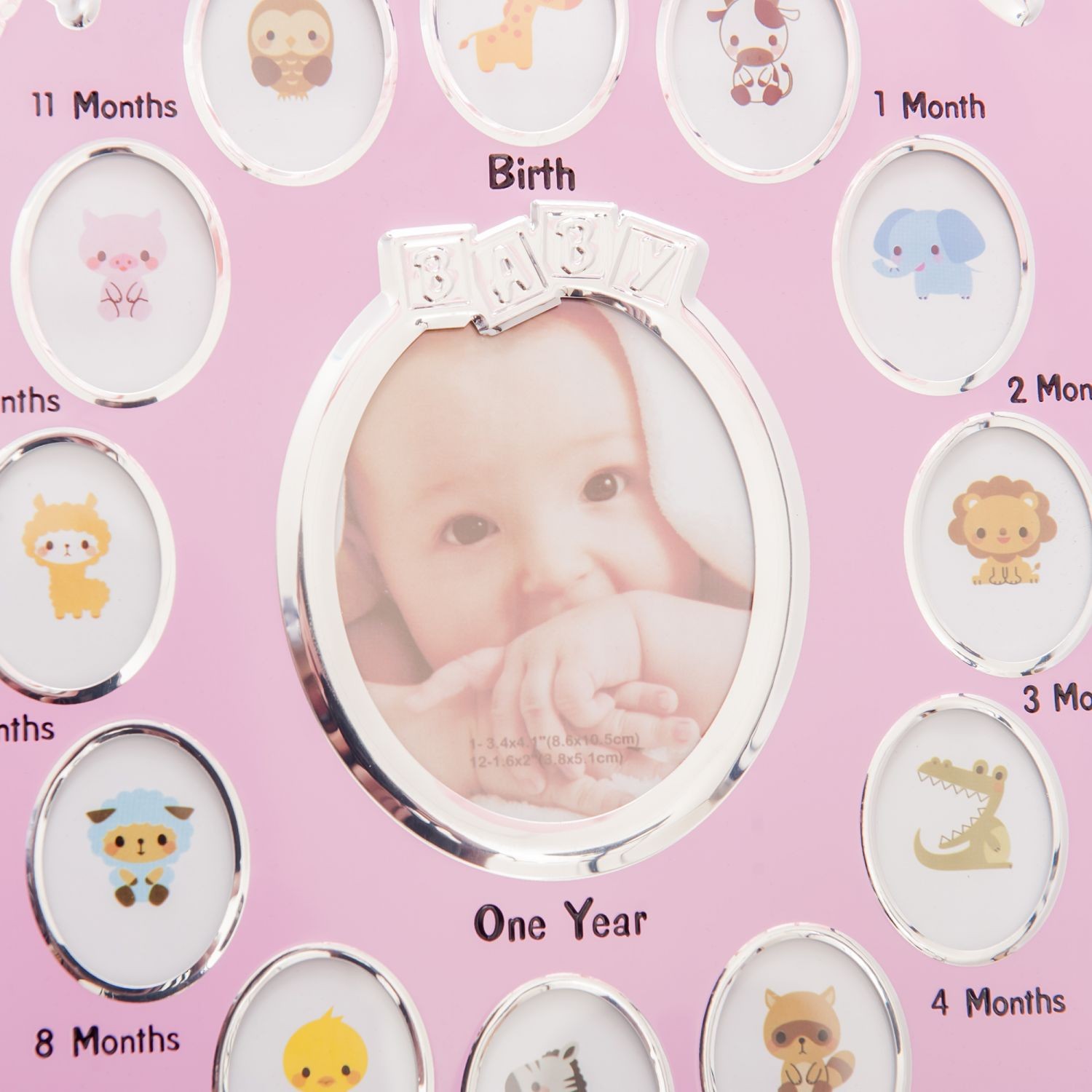 Pozele pentru cele 12 luni trebuie sa fie mai mici, iar in centru exista un spatiu mai mare pentru fotografia principala deasupra careia scrie in engleza "Baby" (bebelus) si birth (nastere).