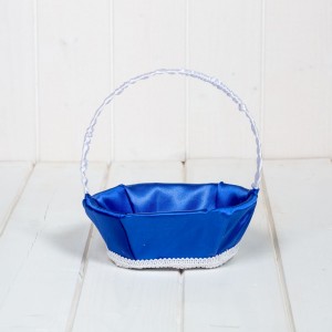 Pentru un baietel este adecvat cosuletul de culoare albastra. In acest cosulet de mici dimensiuni incap cel putin 100 cruciulite botez sau cocarde.