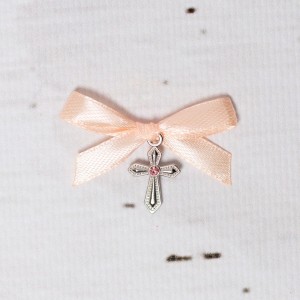Deoarece culorile luminoase sunt mereu in tendinte mai ales primavara, daca esti nasa unei fetite delicate, alege pentru botezul micutei cruciulite botez cu pietricica roz si fundita somon.