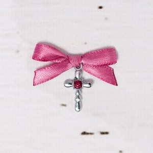 Cruciulitele botez cu strass rosu si fundita roz prafuit sunt adesea folosite in biserica, la botezul fetitelor. Micutele obiecte religioase sunt oferite la botez de catre nasi, in timp ce cosuletul de cruciulite si marturiile oferite la petrecerea de la restaurant sunt asigurate de parintii bebelusului.
