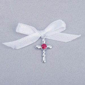 Foarte apreciate de nasii unei fetite sunt cruciulitele cu strass rosu in mijloc.
