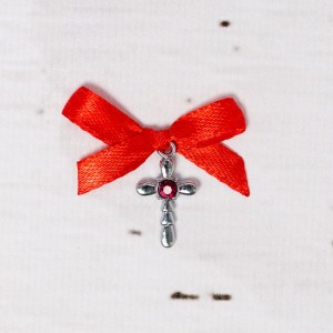 Cruciulitele botez cu strass rosu si fundita rosie sunt adesea folosite in biserica, la botezul fetitelor. Micutele obiecte religioase sunt oferite la botez de catre nasi, in timp ce cosuletul de cruciulite si marturiile oferite la petrecerea de la restaurant sunt asigurate de parintii bebelusului.