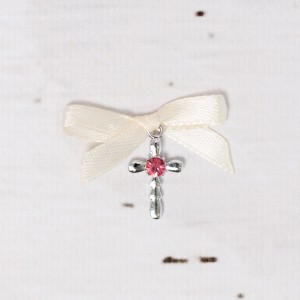 Daca vrei sa faci o surpriza parintilor finutei tale si sa cumperi pentru botez cruciulite, alege accesorii botez elegante, cu strass roz in mijloc si fundita ivory.