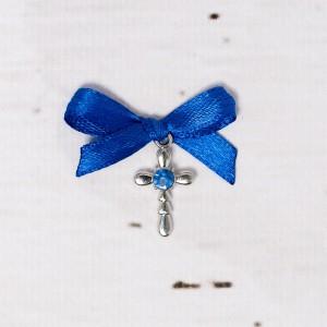 Cruciulitele botez cu strass albastru si fundita in aceeasi culoare pot fi daruite invitatilor prezenti la slujba religioasa de crestinare a unui baietel.
