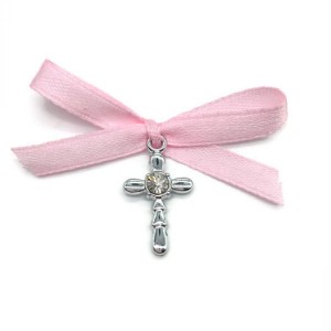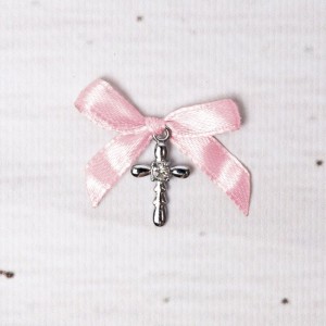 Deoarece rozul inspira optimism si buna dispozitie, cruciulitele cu fundita roz raman cea mai populara alegere pentru botezul unei mici crestine. Cruciulitele sunt realizate din metal inoxidabil, iar fundita este realizata din satin.