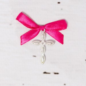 Cruciulitele lacrima botez cu model ondulat sunt perfecte pentru primul eveniment din viata unei fetite. Daca iti plac culorile puternice, poti alege cruciulite botez cu fundita fucsia.