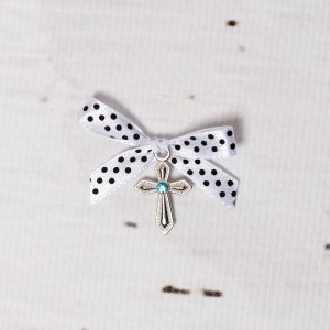 Cruciulitele cu pietricica bleu si fundita alba cu buline sunt accesorii de botez perfecte pentru primul eveniment important din viata finutului tau.