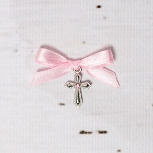 Deoarece culorile calde sunt mereu in tendinte mai ales primavara, daca esti nasa unei fetite delicate, alege pentru botezul micutei cruciulite botez cu pietricica roz si fundita roz.