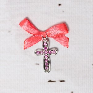 Cruciulitele botez cu strassuri roz si fundita corai pot fi un cadou dragut pentru invitatii care participa la botezul unei fetite dragalase. Conform traditiei, cea care cumpara cruciulitele este nasa copilului.