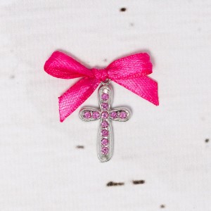 Daca esti nasa unei fetite ce urmeaza sa primeasca taina botezului, urmeaza traditiile crestine si ofera-le martorilor prezenti la ceremonie un cadou religios sub forma de cruciulite. Foarte dragute sunt cruciulitele incrustate cu mici strassuri roz si cu fundita fucsia.
