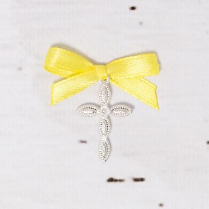 Cruciulitele lacrima botez cu fundita galbena sunt o alegere inspirata pentru botezul unui copilas nascut vara.