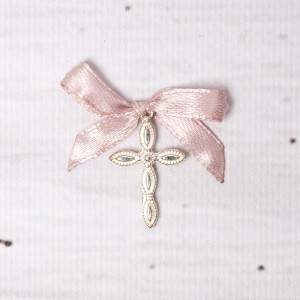 Cruciulitele sunt accesorizate cu fundita roz pudra.