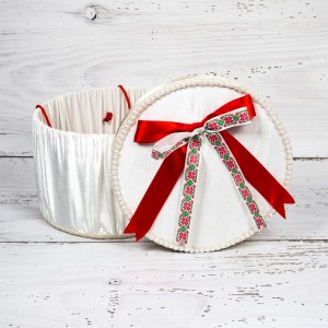 Cutia trusou botez decor traditional si funda rosie este un articol elegant si util, folosit la biserica, pentru a transporta hainutele din trusoul bebelusului. Avand decor cu model rosu, aceasta este potrivita pentru botezul unei fetite.