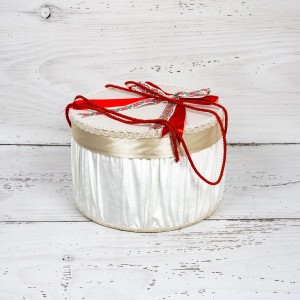 Manerul/snurul rosu din sfoara este suficient de lung si rezistent pentru a facilita transportul. Cutia are baza rotunda si este decorata manual in Atelierul SelfEvents.ro.