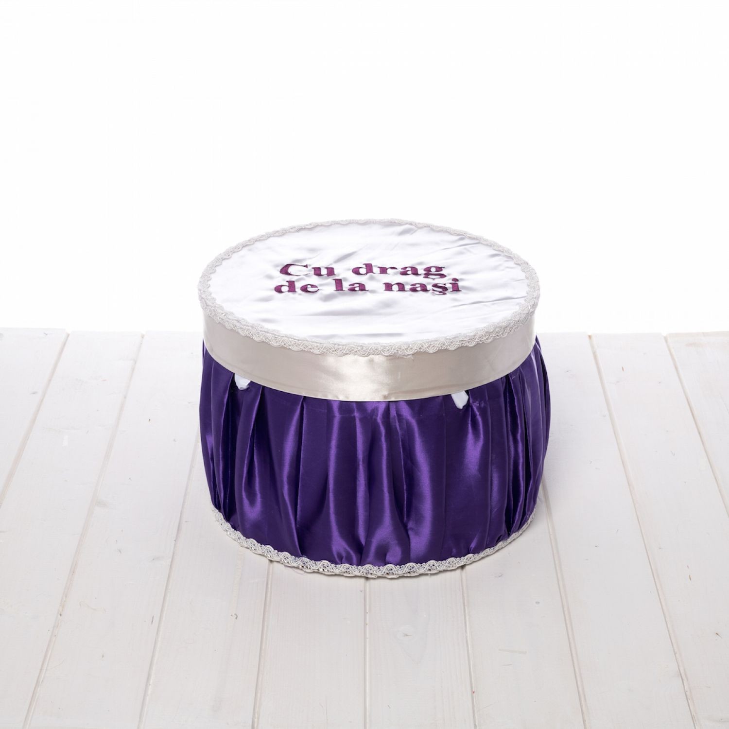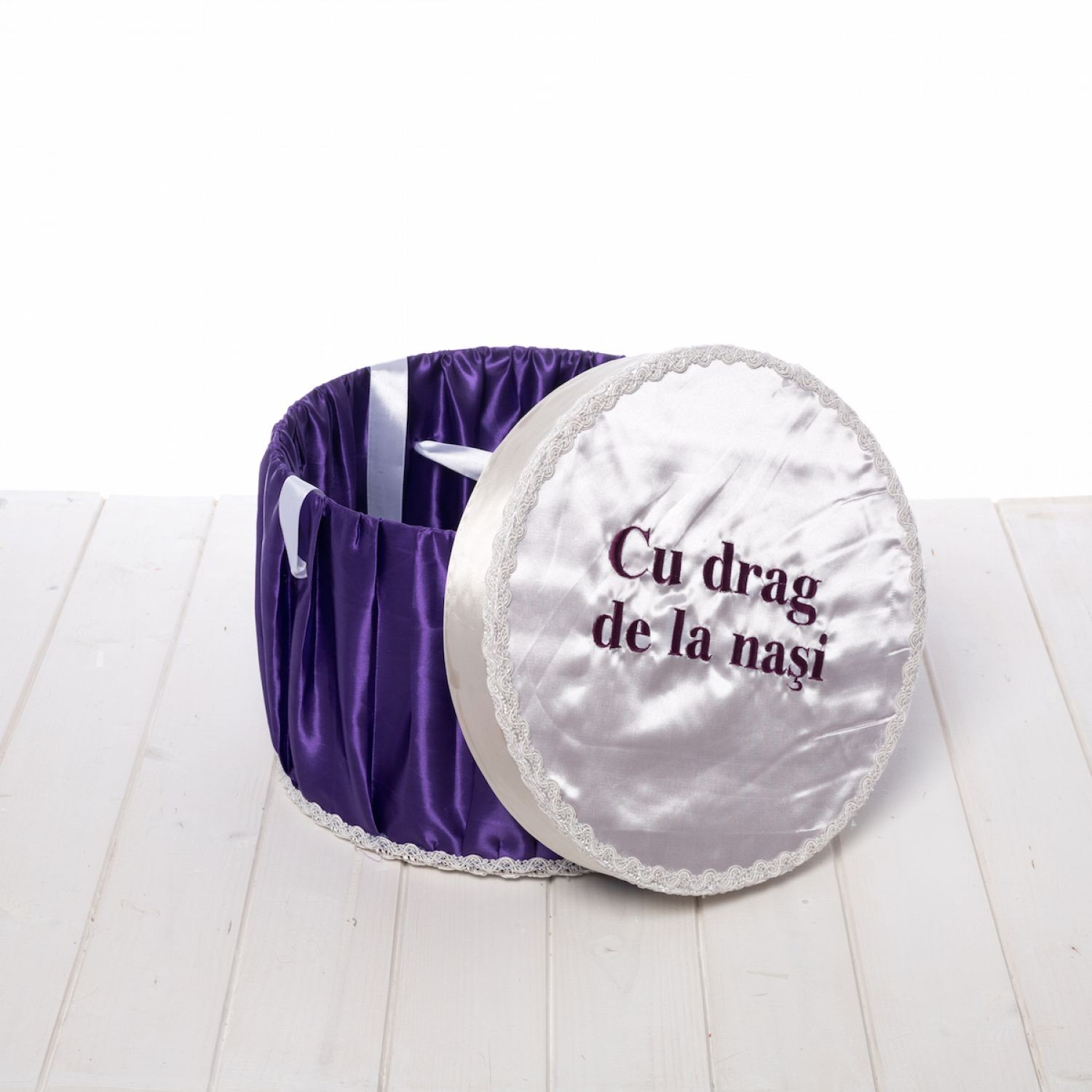 Comanda acum produsul "Cutie trusou mov rotunda Cu drag de la nasi".
