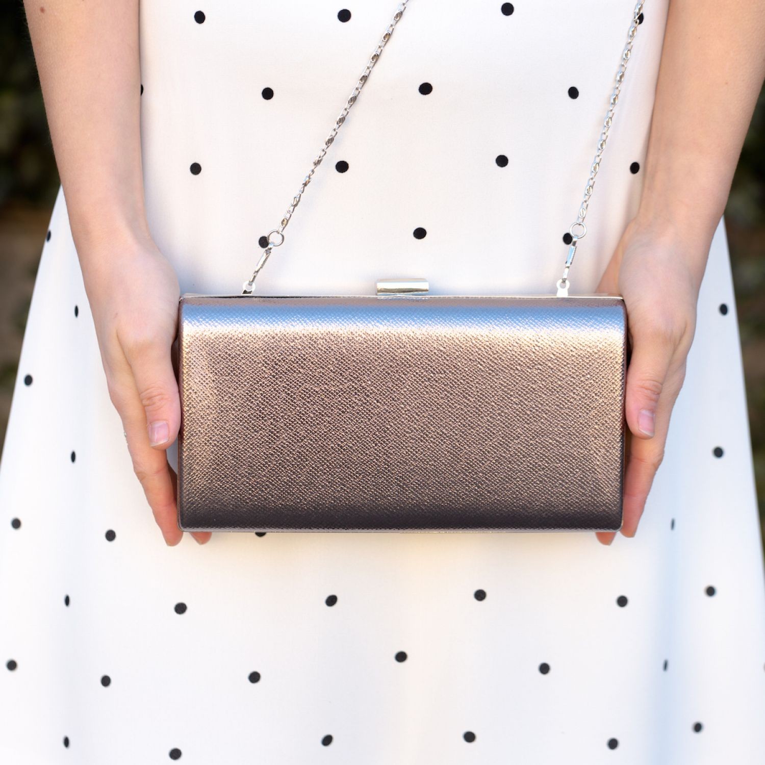 Clutch-ul de ocazie champagne este printre cele mai ravnite accesorii ale momentului.