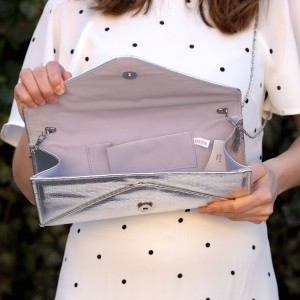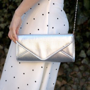 Plicul de ocazie de culoare argintie iti va scoate in evidenta tinuta de seara datorita materialului cu irizatii metalice din care este confectionat. Poti purta aceasta poseta plic la orice petrecere eleganta, inclusiv in noaptea de Revelion.