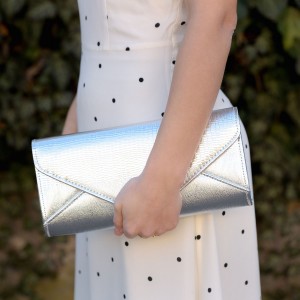 Plicul argintiu din piele ecologica este accesoriul must have pentru evenimentele importante.