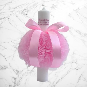 Această lumânare nu doar iluminează drumul spiritual al micuțului, ci și simbolizează iubirea și grija nașilor. Decorul din tulle adaugă o notă de eleganță, iar mesajul personalizat face ca acest obiect să devină o amintire de preț peste ani.