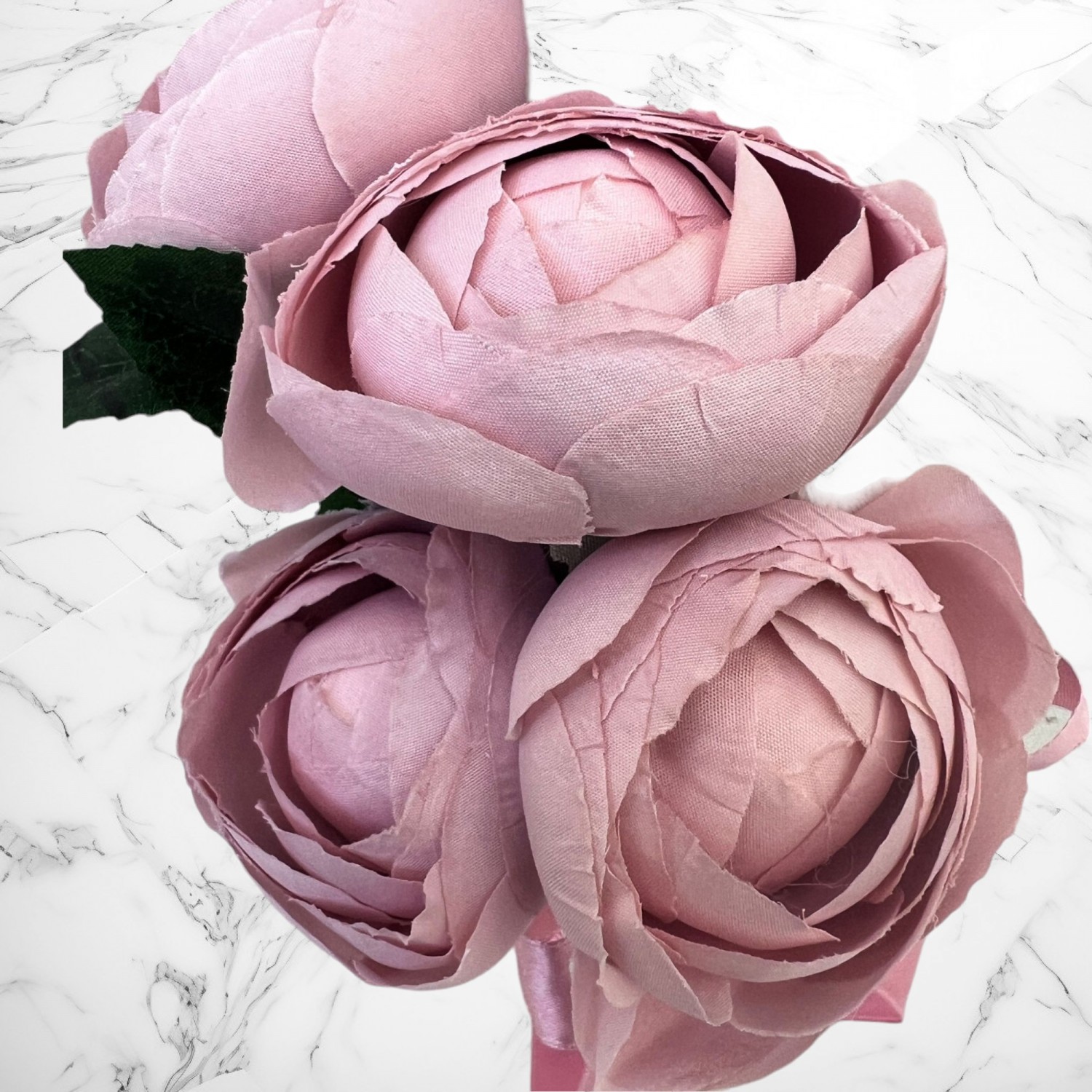 Lumanarea pentru botez este decorata cu banda roz pudra si bujori mari roz pudra.