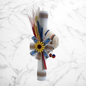 Această lumânare de botez cu decor tradițional este o alegere ideală pentru părinții și nașii care își doresc să păstreze autenticitatea obiceiurilor românești. Fiecare element decorativ este inspirat din simbolistica folclorică, conferind evenimentului o atmosferă de poveste.