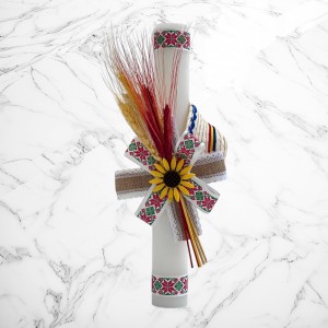 Această lumânare de botez cu decor tradițional este o alegere ideală pentru părinții și nașii care își doresc să păstreze autenticitatea obiceiurilor românești. Fiecare element decorativ este inspirat din simbolistica folclorică, conferind evenimentului o atmosferă de poveste.