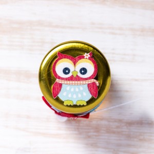 Fa-le o surpriza invitatilor tai la nunta si ofera-le in semn de respect pentru prezenta lor la eveniment borcanele umplute cu miere, decorate festiv cu o banda din dantela bleu, fundita grena si perluta, dar si o figurina bufnita, lipita pe capac.