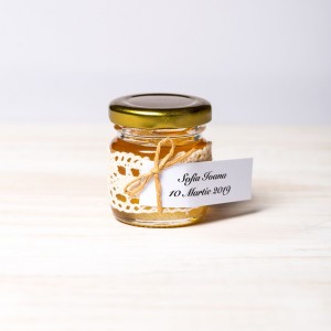 Borcanelele cu miere sunt foarte apreciate de invitati, iar dupa ce mierea se termina, acestea pot fi pastrate ca amintire.