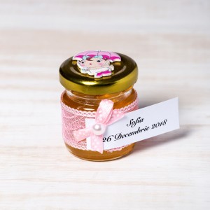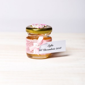 Marturiile borcanele cu miere sunt o alegere perfecta pentru botezul micutei tale printese. Si cum mierea este un deliciu caruia ii poti rezista cu greu, marturiile borcanele au fost decorate manual nu doar cu o banda lata din dantela roz, ci si cu un abtibild simpatic, ce infatiseaza o fetita cu umbrela roz.