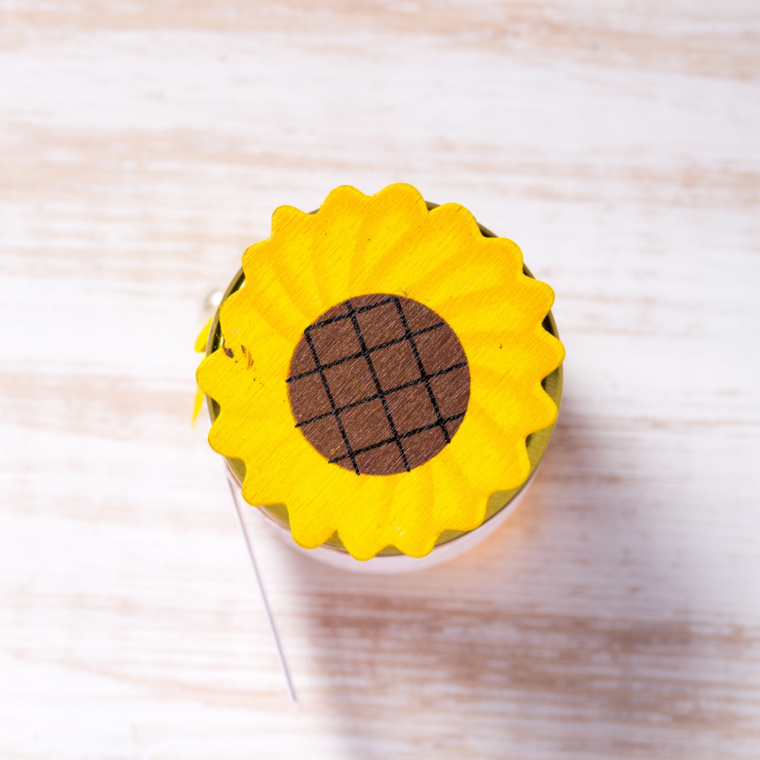 Marturiile botez decorate manual cu dantela alba si figurina floarea-soarelui sunt potrivite pentru evenimentele de vara-toamna. Acestea sunt asortate cu o fundita galbena si jumatate de perluta.