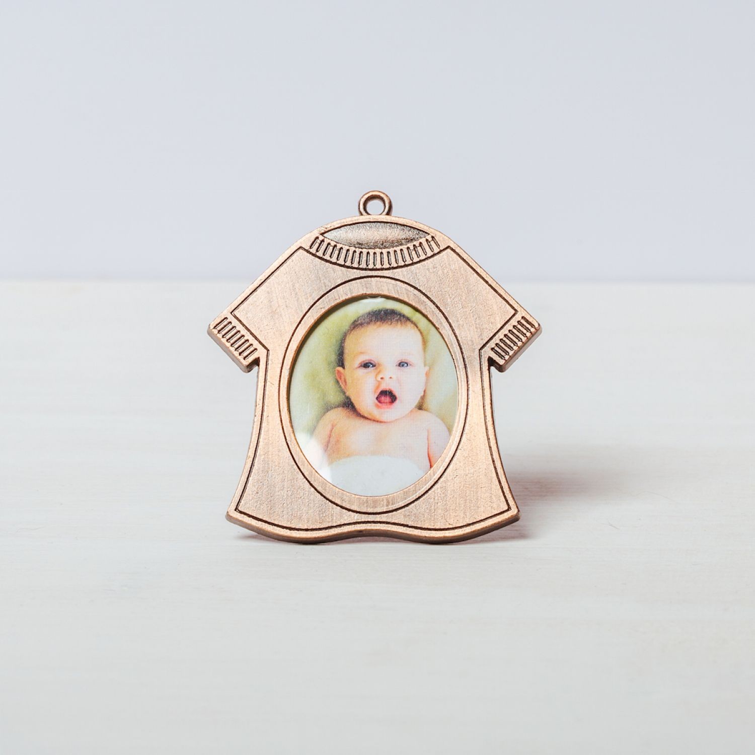 Aceste marturii din metal cu spate si suport din plastic dur iau forma unui costumas pentru bebelusi.