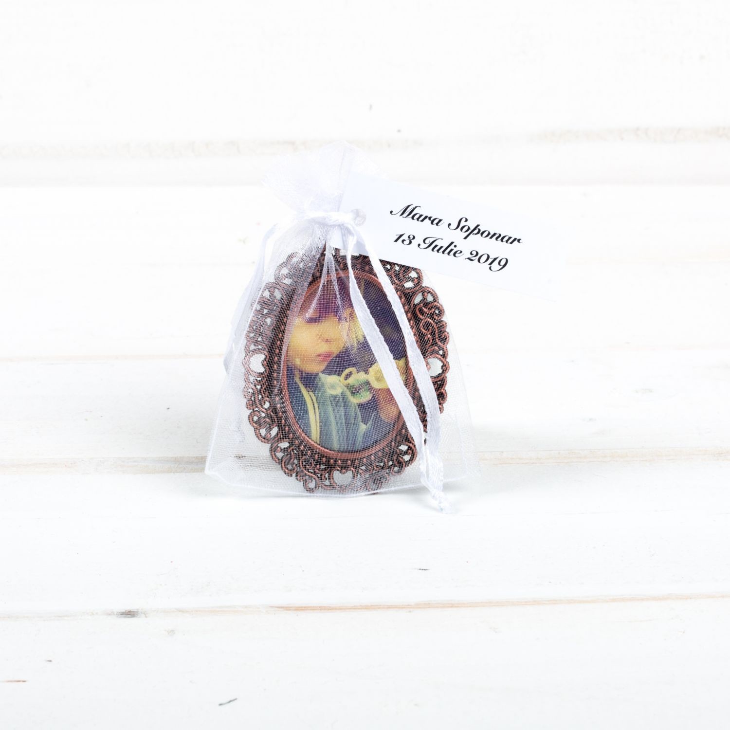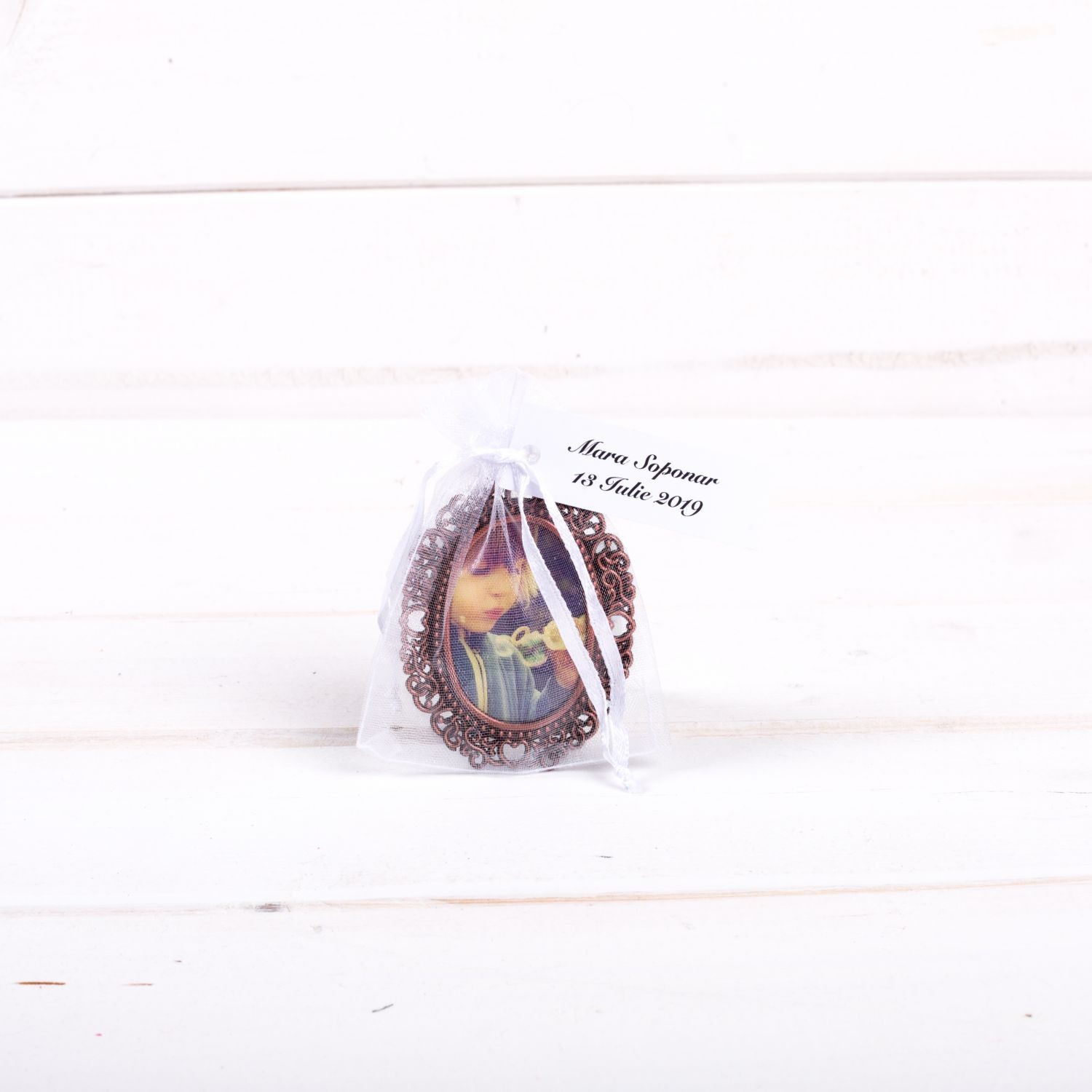 Ramele foto pot fi pastrate pe birou sau pe noptiera, dar si in propria poseta daca sunt de mici dimensiuni, cum este aceasta marturie ovala.