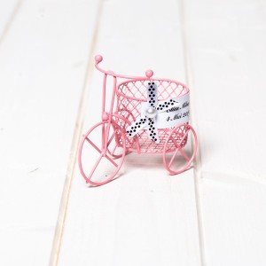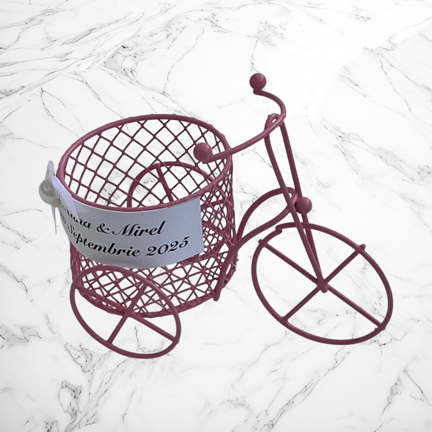Adaugă un strop de eleganță și rafinament evenimentului tău cu această mărturie bicicletă din sârmă roz, ideală pentru nunți, botezuri și evenimente speciale. Designul delicat și materialele de calitate transformă această mărturie handmade într-un suvenir perfect pentru invitați.