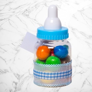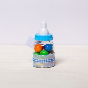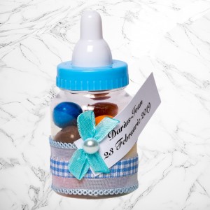 Transformă botezul băiețelului tău într-un eveniment memorabil cu aceste mărturii sub formă de biberon bleu, perfecte pentru a mulțumi invitaților. Realizate din plastic transparent și decorate manual, aceste suveniruri elegante adaugă un plus de rafinament evenimentului tău.
