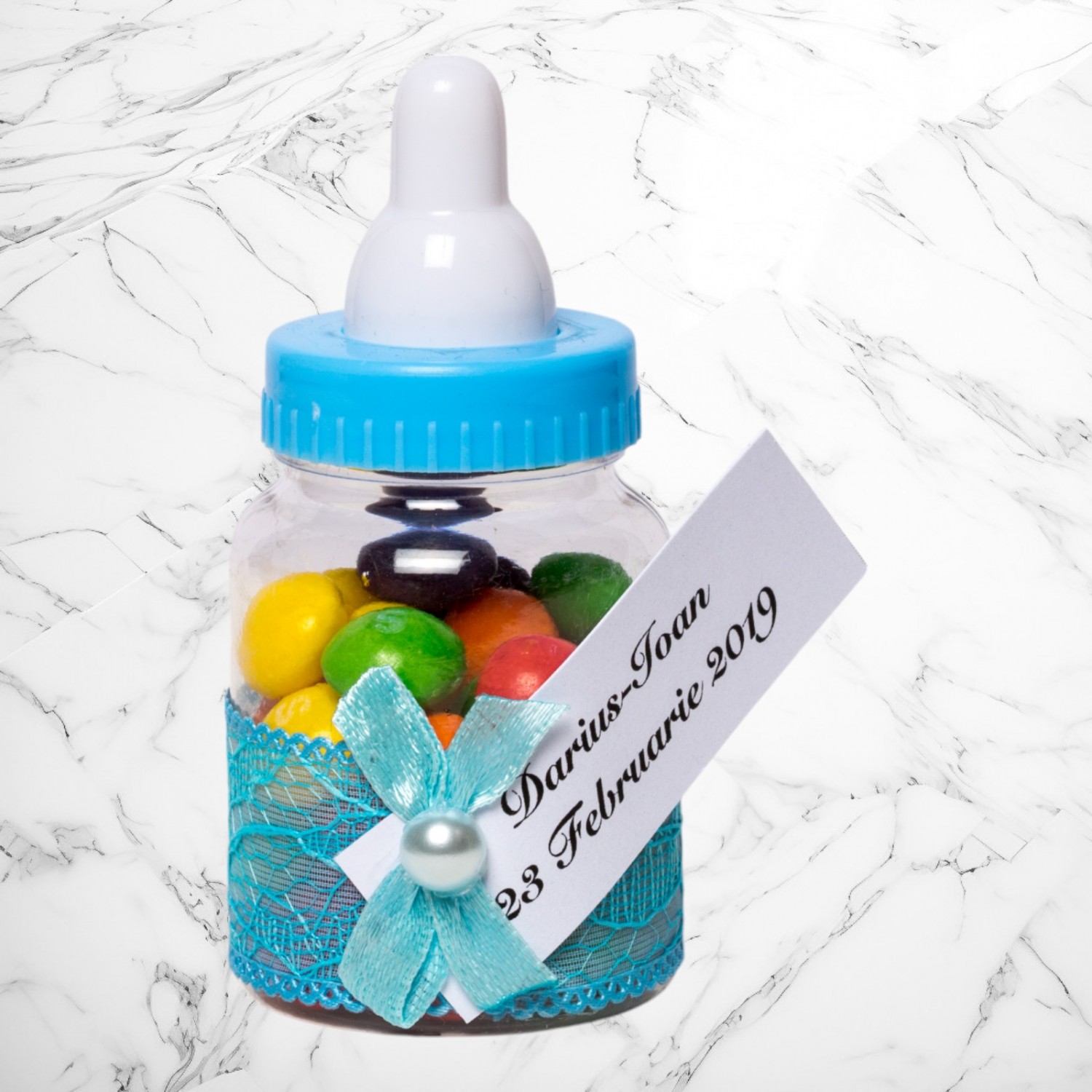🔎 Cuvinte cheie: mărturii botez biberon bleu, cadouri invitați botez, mărturii personalizate botez, suvenir botez băiețel, decor botez elegant