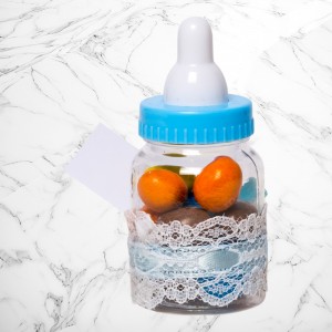 Transformă botezul băiețelului tău într-un eveniment memorabil cu aceste mărturii sub formă de biberon bleu, perfecte pentru a mulțumi invitaților. Realizate din plastic transparent și decorate manual, aceste suveniruri elegante adaugă un plus de rafinament evenimentului tău.