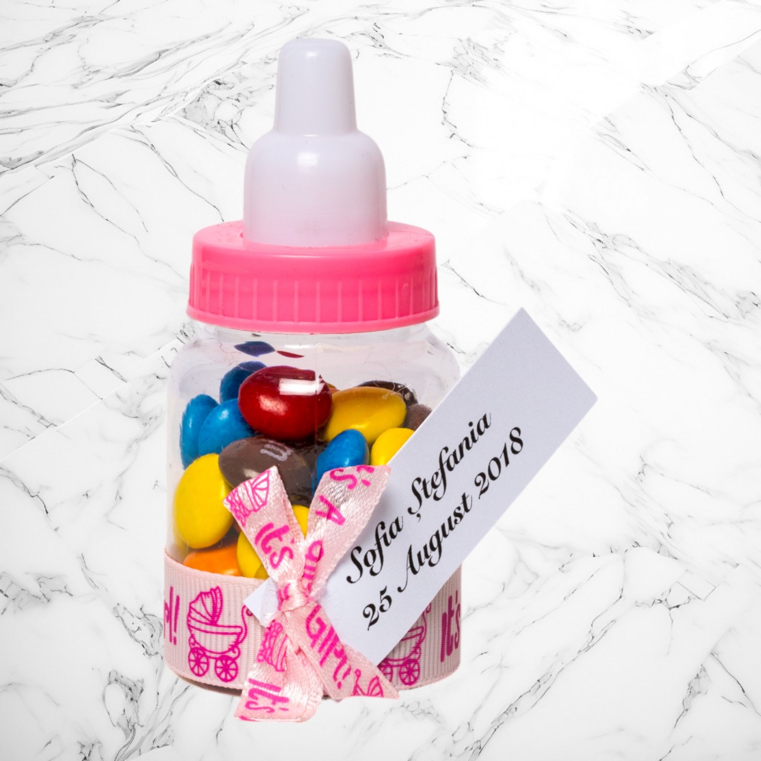 Comanda acum produsul "Marturii botez biberoane roz It s a girl".