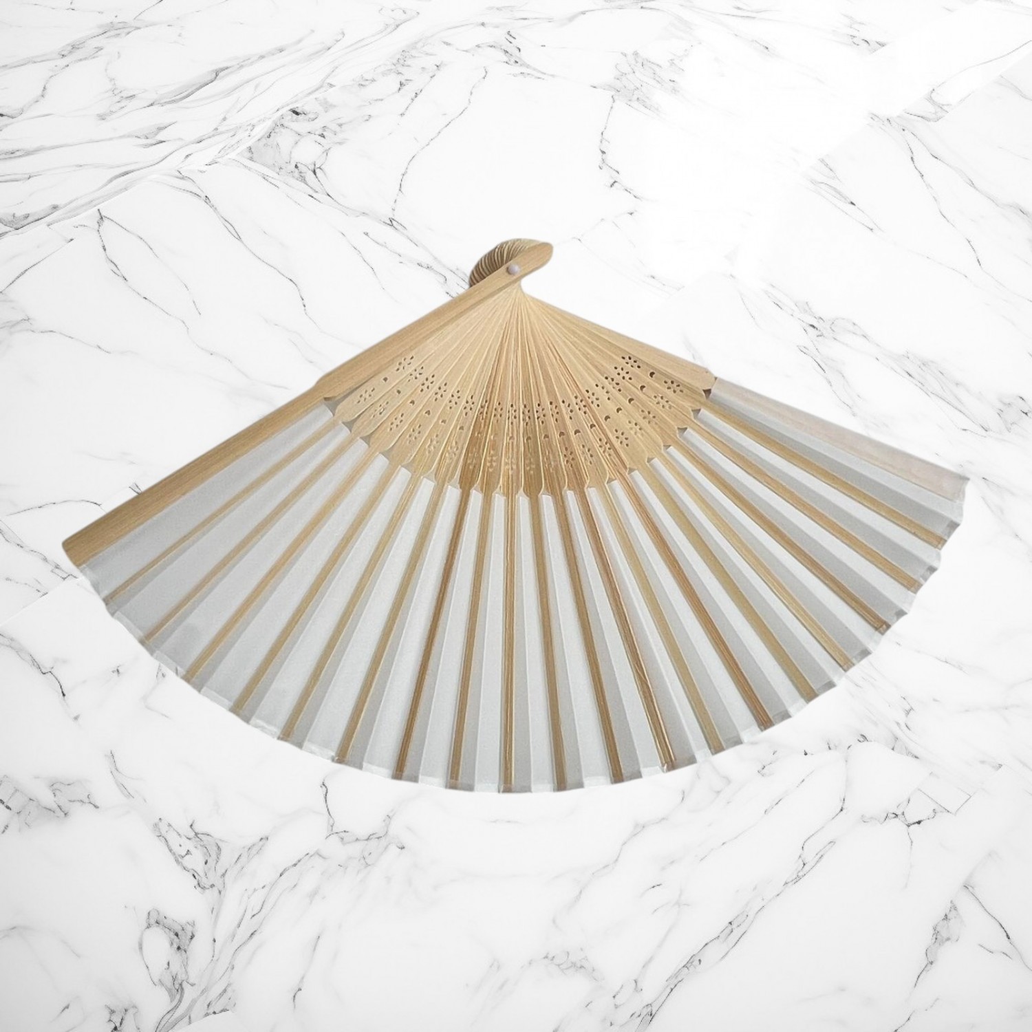 O alegere rafinată și practică pentru invitați, ideală pentru evenimente desfășurate în aer liber sau în sezonul cald! ☀️ Acest evantai din bambus și hârtie decorativă oferă un aer vintage, dar este și extrem de util, fiind un cadou memorabil pentru cei dragi.