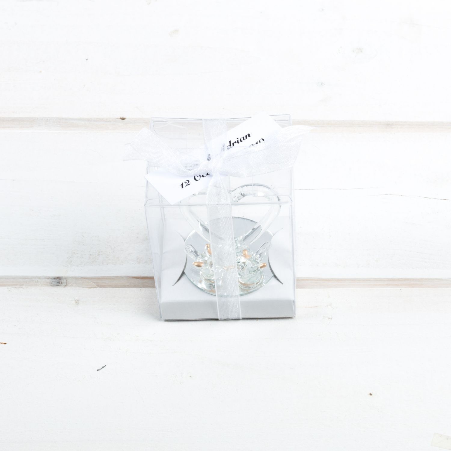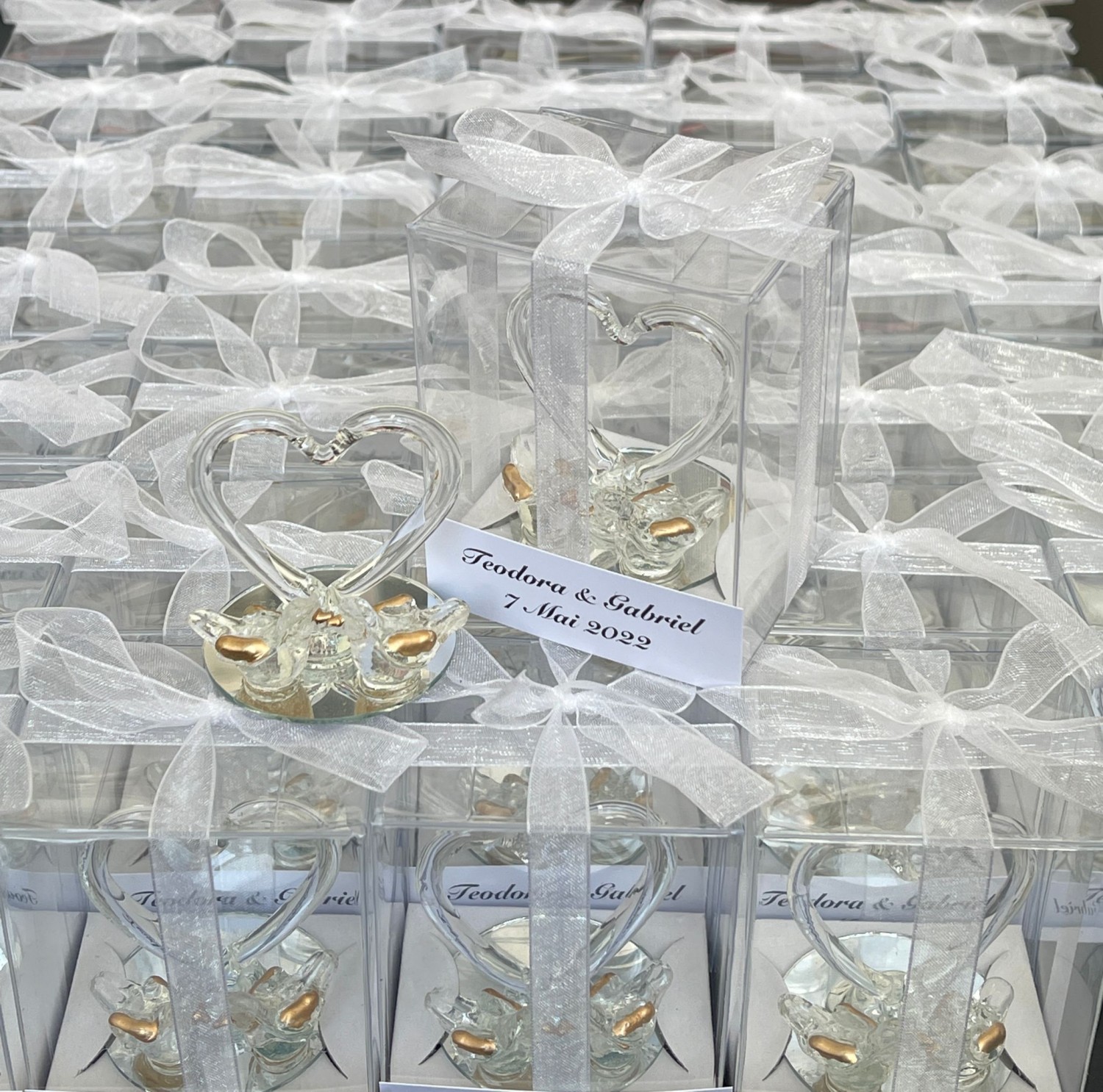 Completează decorul evenimentului tău special cu o mărturie elegantă și simbolică – o inimă din sticlă cu doi porumbei, reprezentând dragostea, armonia și unitatea. Această mărturie este perfectă atât pentru nunți, cât și pentru botezuri, oferind invitaților o amintire prețioasă.