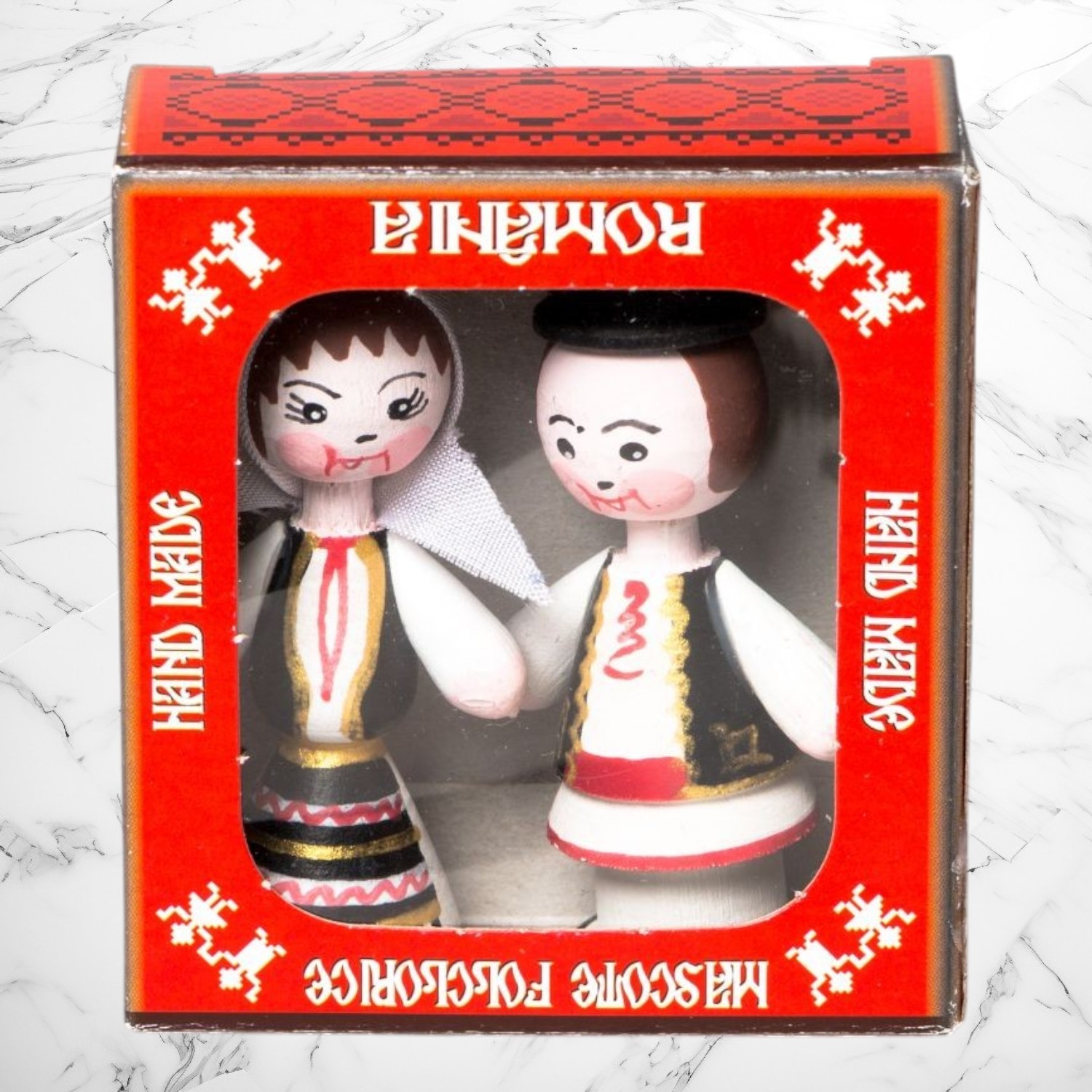 Apreciate pentru frumusetea portului popular, papusile din lemn sunt pictate manual.