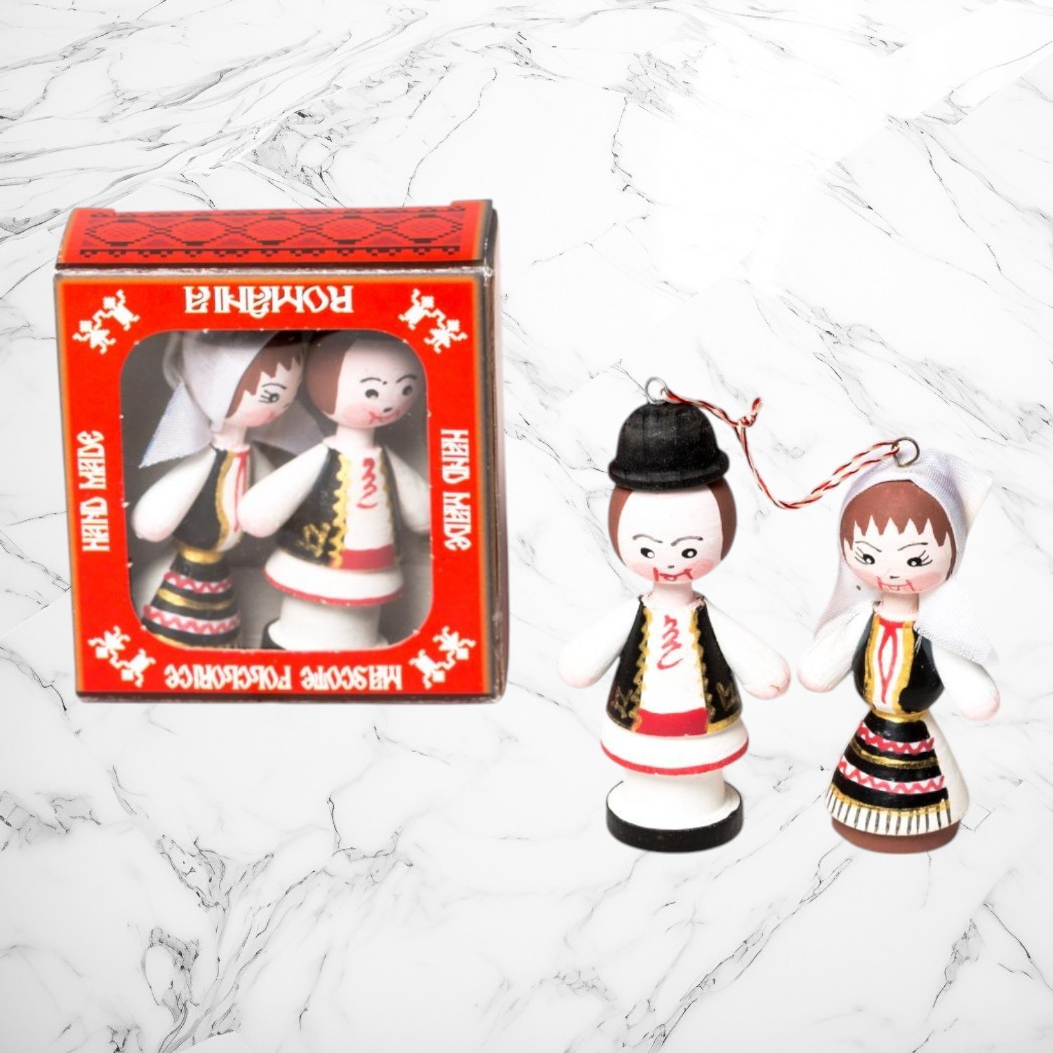 Apreciate pentru frumusetea portului popular, papusile din lemn sunt pictate manual.