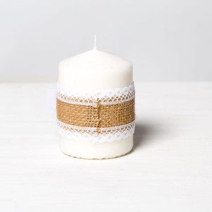 Pentru o nunta in stil rustic, se cuvine ca mirii sa ofere invitatilor prezenti la cel mai important eveniment din viata lor marturii care vin in ton cu tema nuntii, cum sunt lumanarile decorate festiv cu dantela alba si iuta.