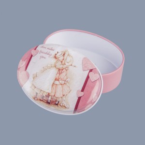 Aceste cutiute dragute de forma ovala au imprimeuri diferite, iar unele dintre ele si mesaje scrise. Avantajul cutiutelor metalice este ca nu se deterioreaza in timp si nu necesita asamblare.