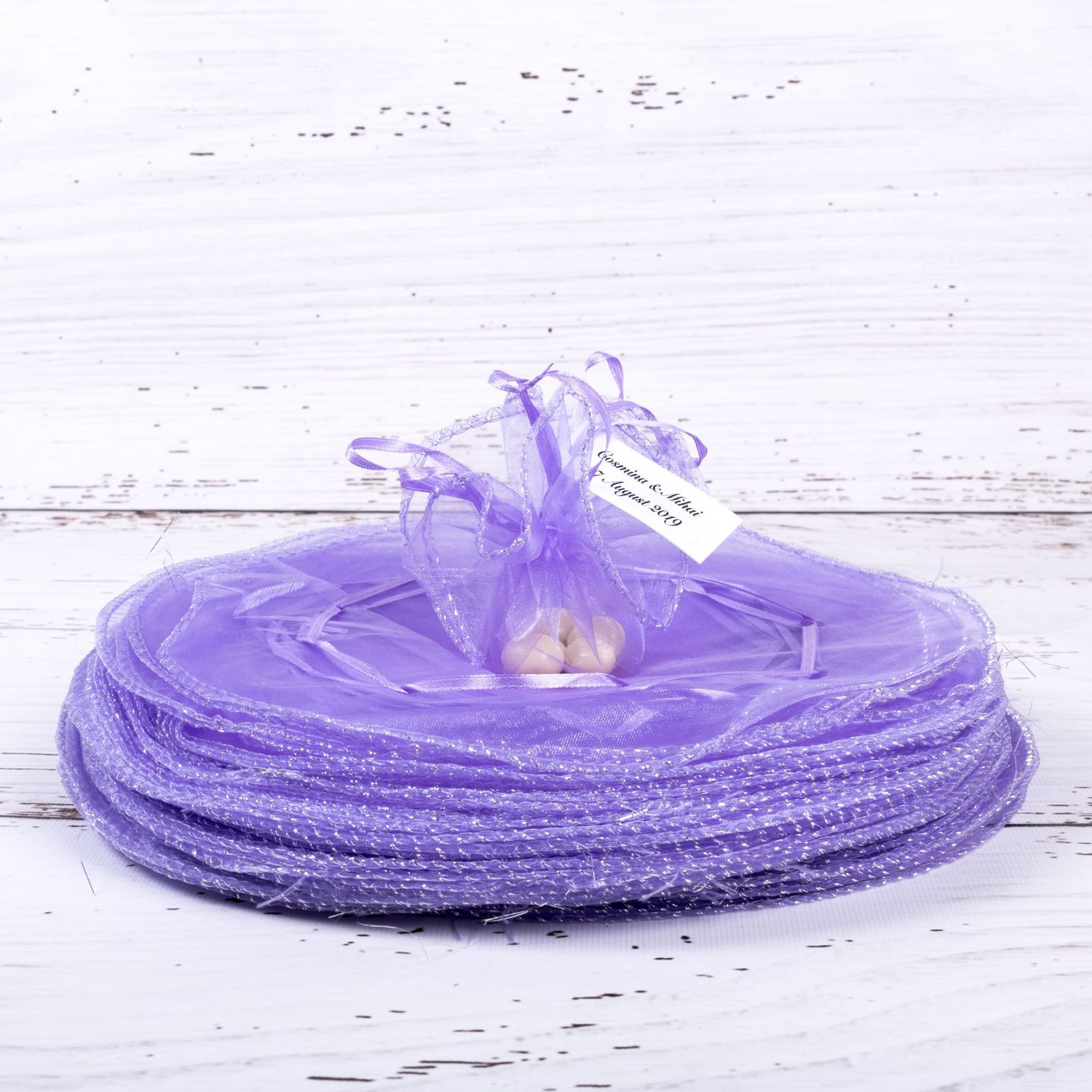 Pentru o nunta deosebita in stil rustic sau organizata la cort, marturiile saculeti rotunzi de culoarea lavandei, cu fir argintiu pe margine adauga o nota festiva oricarui eveniment.