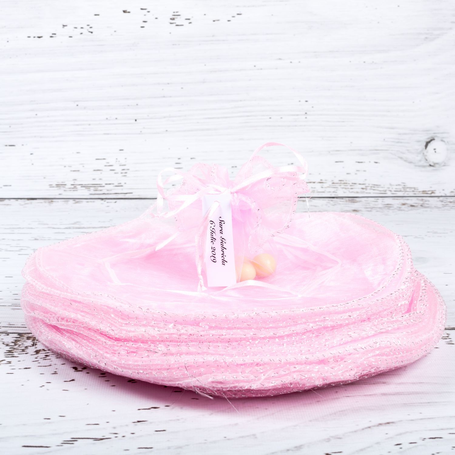Marturiile de nunta saculeti roz cu fir argintiu reprezinta o alegere mereu actuala pentru evenimentele din sezonul cald. Saculetii organza de forma rotunda se asociaza perfect unei nunti cu tema Optimism.