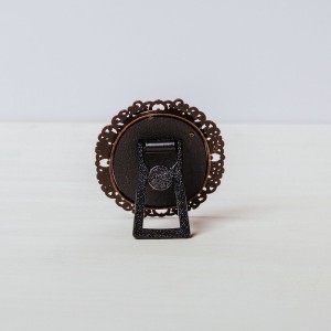 Rama este din metal cu aspect vintage, iar spatele ei, respectiv suportul de sprijin sunt din plastic.