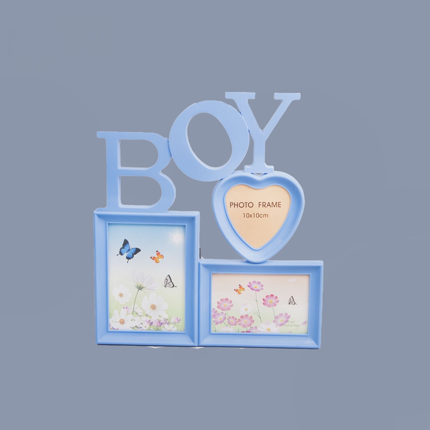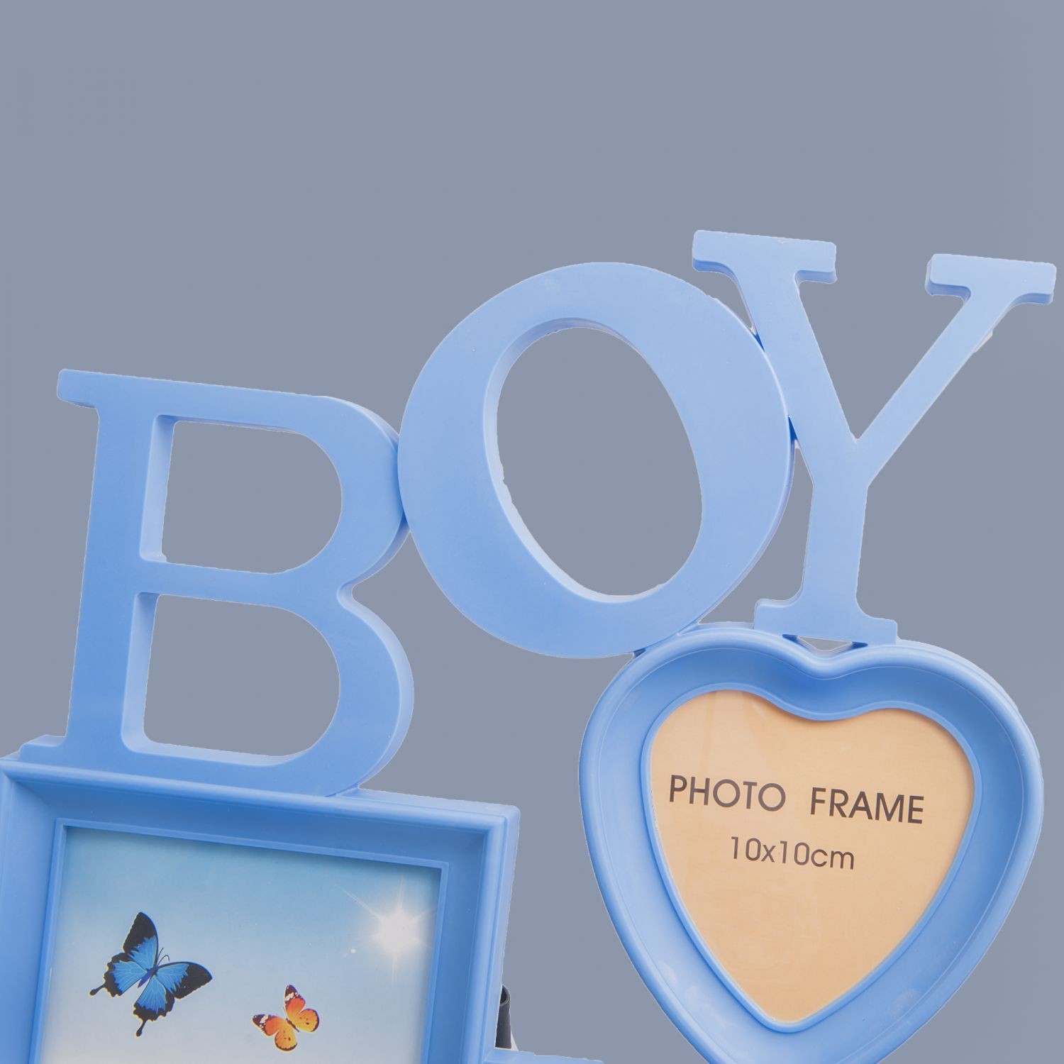 Rama foto tip tablou Boy este o sugestie de cadou pentru petrecerea unui baietel. Aceasta rama foto cu cadru si litere albastre este ideala pentru trei dimensiuni de poze.