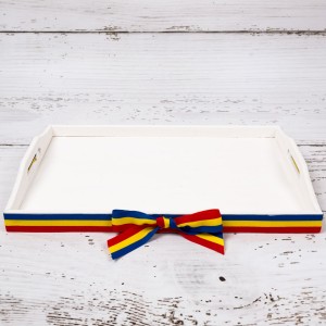 Un set complet pentru gatitul miresei este format din: tavita de sustinere, cutie pentru verighete, oglinda si perie de par. Produsele sunt fabricate din lemn, decorate manual cu grund non-toxic si model tricolor.