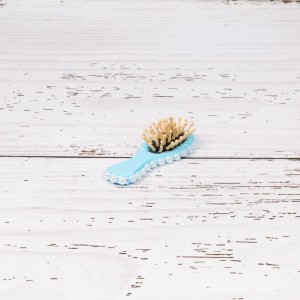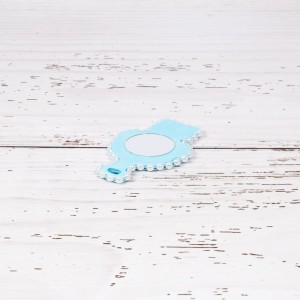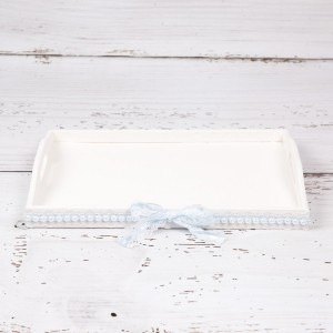 Accesoriile bleu au decor manual, articolele din set fiind imprejmuite cu un sirag perlute. La petrecere vor participa si nasii baietelului. Nasa va taia motul, iar parintii vor pastra parul copilasului in cutiuta pentru prima suvita.