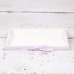 Dupa petrecere, parintii fetitei vor pastra ca amintire setul tavita turta lavanda cu perlute si dantela.